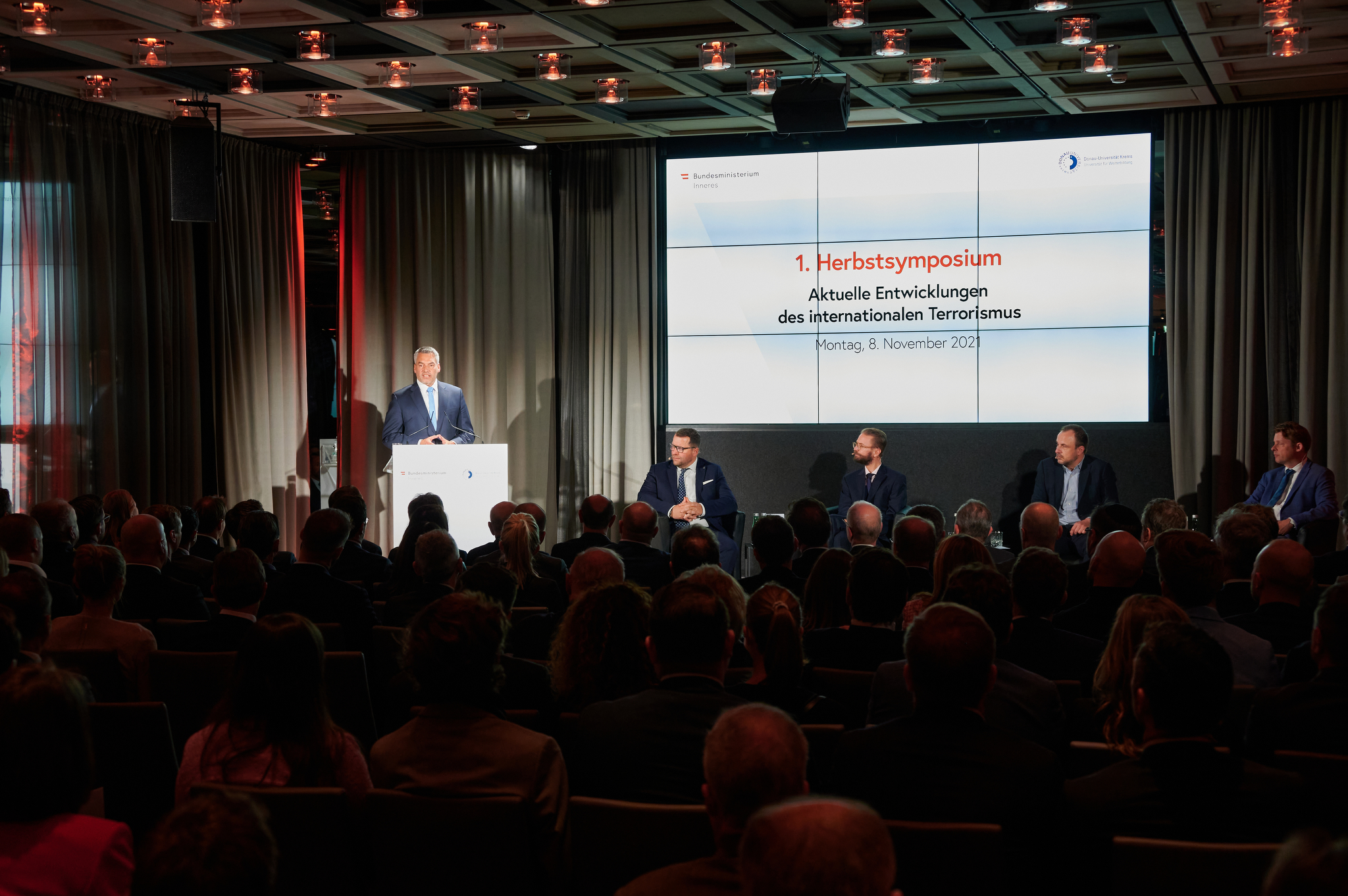 "Die Erfahrungen beim Aufbau der 'Direktion Staatsschutz und Nachrichtendienst' haben die Bedeutung der Grundlagenforschung im Bereich ‚Terrorismus- und Extremismus-Bekämpfung‘ gezeigt, weshalb diese heutige Veranstaltung der Beginn einer umfassenden Forschungskooperation mit der Universität für Weiterbildung Krems ist", sagte Innenminister Karl Nehammer beim 1. Herbstsymposium zum Thema "Aktuelle Entwicklungen des internationalen Terrorismus", zu dem das Innenministerium und die Universität für Weiterbildung Krems am 8. November 2021 in Wien geladen hatten. "Mein besonderer Dank gilt dem Rektor der Universität, Mag. Friedrich Faulhammer, für diese Zusammenarbeit in den kommenden fünf Jahren, die international ihresgleichen sucht."