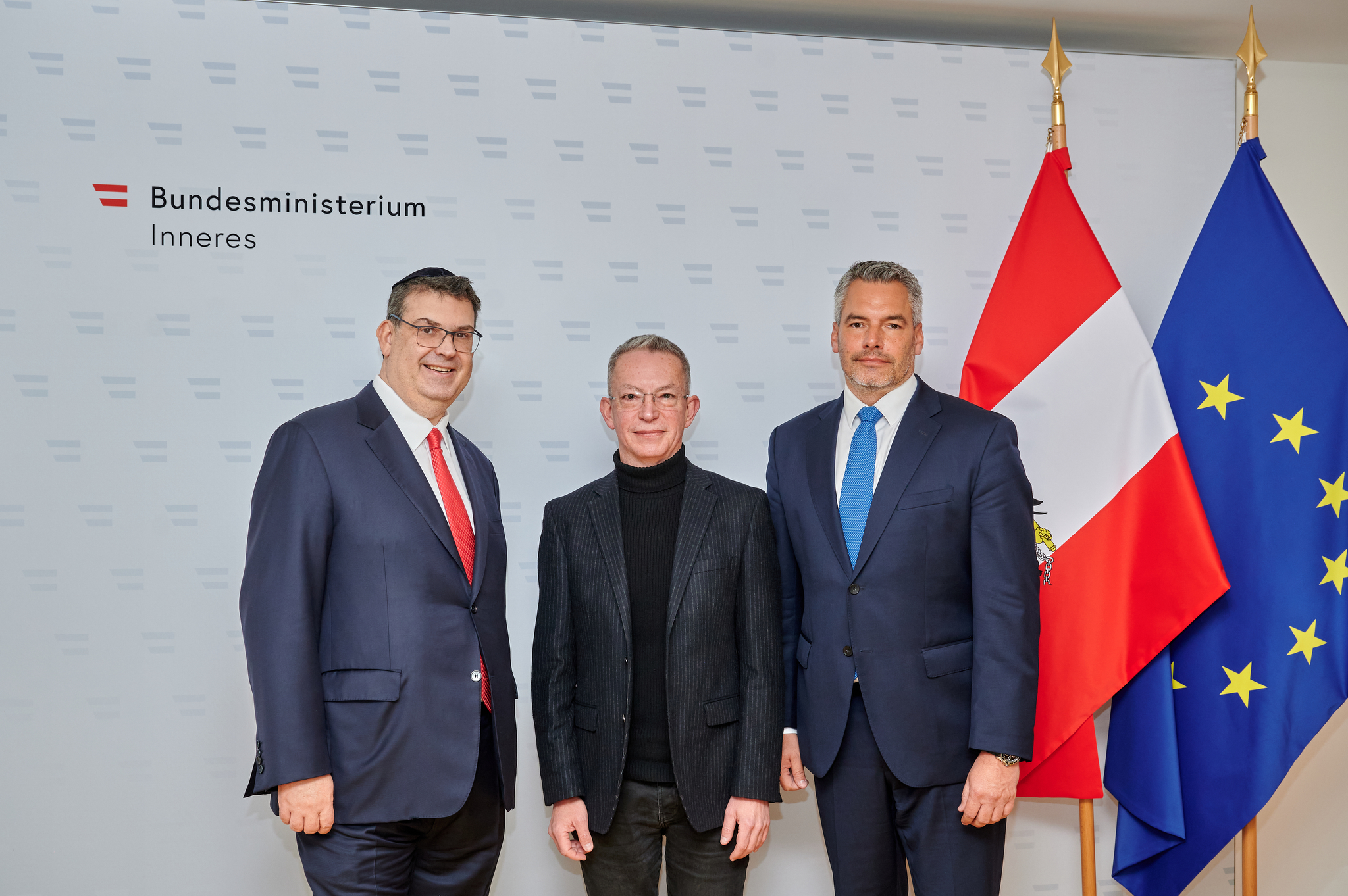 Ein zusätzliches Ausbildungs-Modul für die österreichische Polizei wurde nach einem Arbeitsgespräch mit Innenminister Karl Nehammer, dem Präsidenten der Israelitischen Kultusgemeinde, Oskar Deutsch, und dem Bildungsexperten Daniel Landau präsentiert.