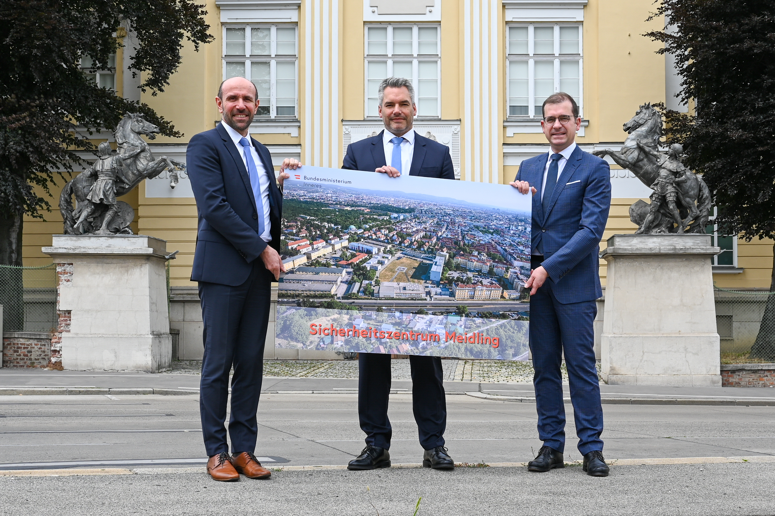Das Innenministerium errichtet ein neues Sicherheitszentrum in Wien-Meidling für die "Direktion für Staatsschutz und Nachrichtendienst" (DSN) sowie sensible, sicherheitskritische Dienststellen. Innenminister Karl Nehammer präsentierte am 9. Juli 2021 die Details zur DSN.